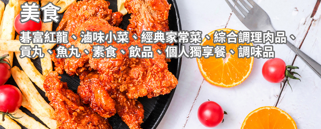碁富紅龍、滷味小菜、經典家常菜、綜合調理肉品、貢丸、魚丸、素食、飲品、個人獨享餐、調味品